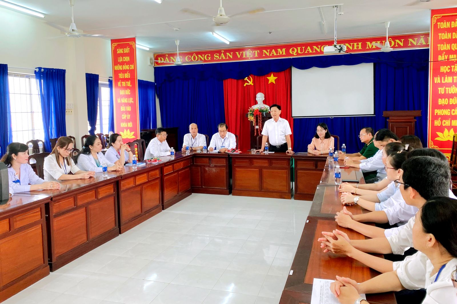 Tại buổi chúc tết, ông Đặng Tấn Hùng, UVBTV, Trưởng Ban Tổ chức huyện ủy ghi nhận và biểu dương những cố gắng, nỗ lực của tập thể cán bộ, Y/ Bác sỹ, điều dưỡng, nhân viên đang công tác tại Trung tâm y tế huyện; đồng chí chúc đội ngũ cán bộ Y/Bác sĩ ngành Y tế huyện năm mới an khang, thịnh vượng, gia đình hạnh phúc, thành công trong công việc; đồng thời Ông đề nghị Trung tâm y tế huyện tiếp tục thực hiện đồng bộ các giải pháp để nâng cao chất lượng khám và điều trị; nâng cao tinh thần đoàn kết, trách nhiệm của đội ngũ cán bộ, Y/ Bác sỹ trong quá trình thực hiện nhiệm vụ; quan tâm, chú trọng việc nâng cao phong cách, thái độ phục vụ hướng tới sự hài lòng của người bệnh; chủ động sẵn sàng mọi mặt đảm bảo công tác phòng chống dịch bệnh, công tác trực ban, cấp cứu, phục vụ tốt nhất cho người bệnh trong dịp Tết, nhất là những bệnh nhân đang điều trị nội trú tại Trung tâm.