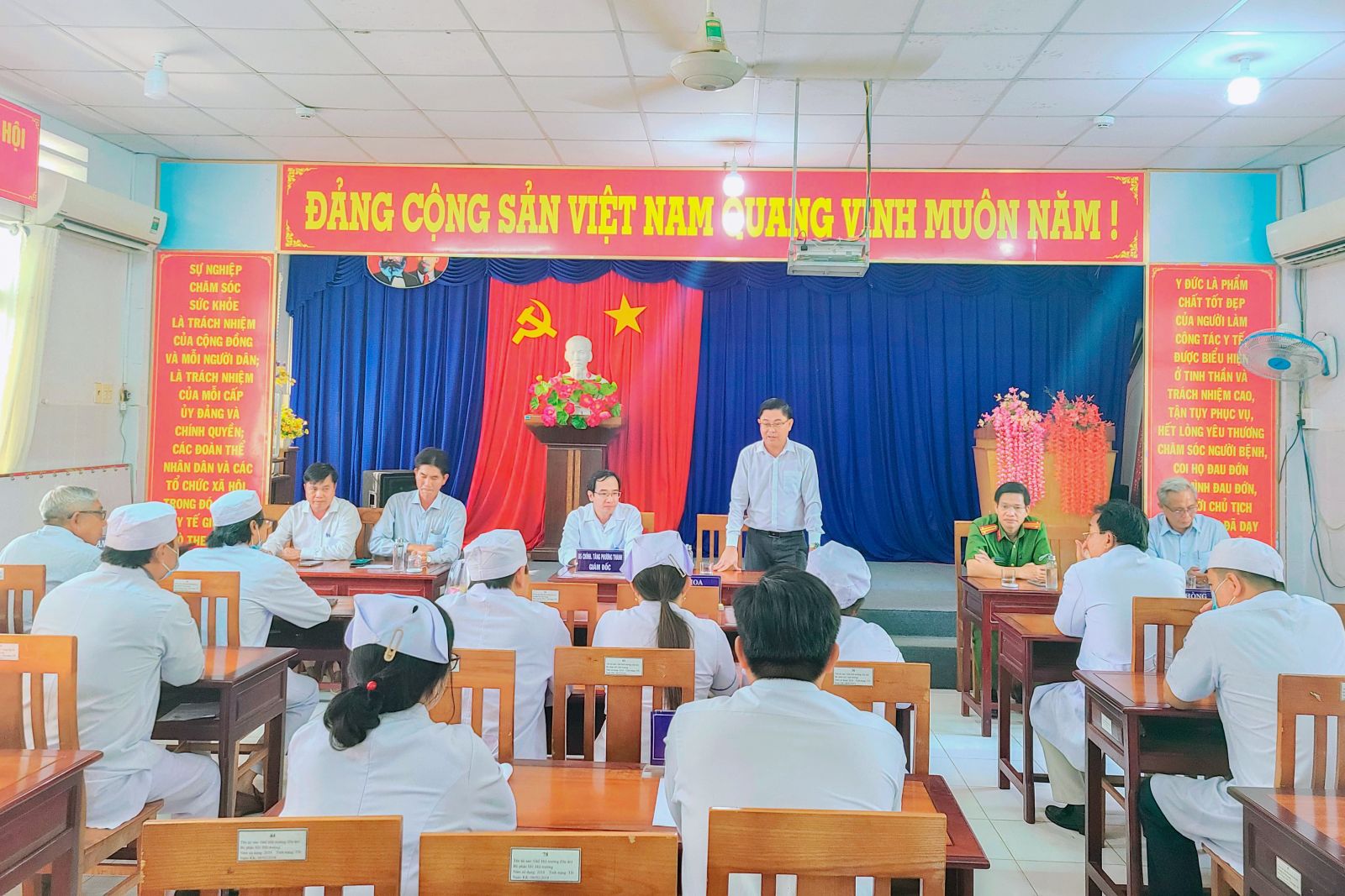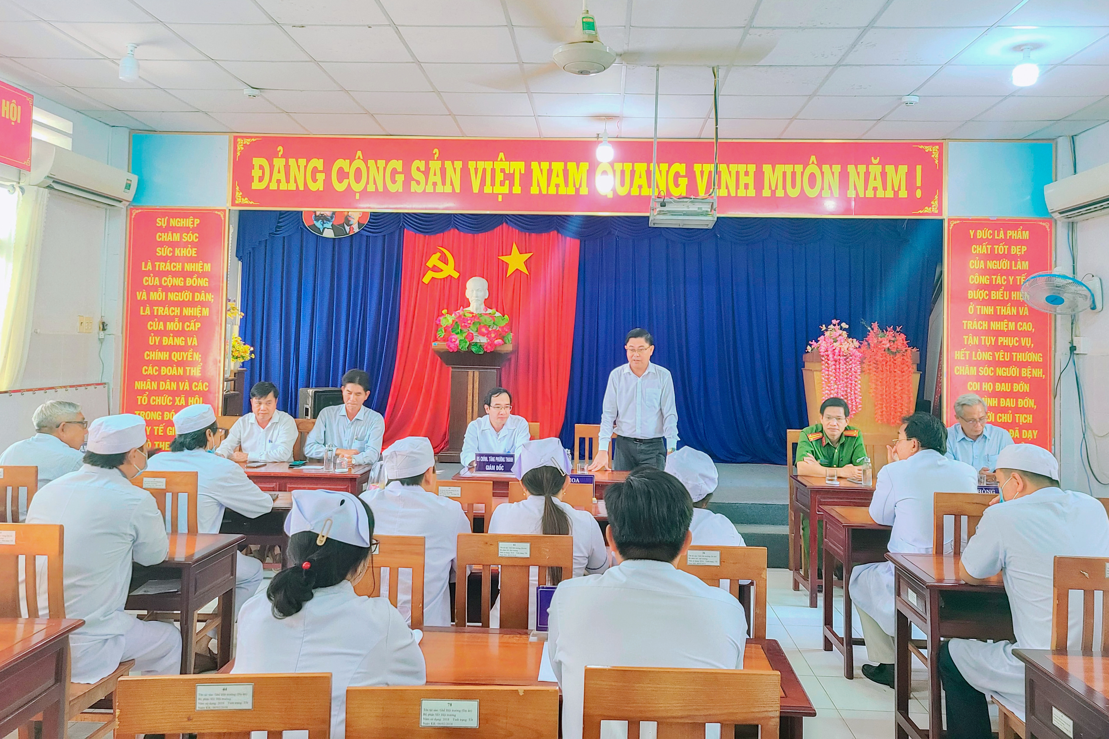 Tại buổi gặp mặt chúc tết, ông Phạm Minh Luyến, Phó Bí thư Thường trực Huyện ủy chia sẽ sơ lược tình hình kinh tế huyện phát triển tốt, sản xuất kinh doanh đạt hiệu quả, người dân đón tết năm nay trong niềm vui phấn khởi, ngành y tế huyện trong năm qua thực hiện rất tốt nhiệm vụ chăm sóc sức khoẻ cho người dân, Huyện Ủy, UBND huyện đánh giá rất cao kết quả đạt được của ngành Y tế trong năm qua và quan tâm tạo điều kiện cho ngành Y tế phát triển hơn nữa. Nhân dịp xuân về Huyện ủy, UBND huyện chúc lãnh đạo, cán bộ ngành Y tế đón tết năm nay an nhàn, vui tươi, hạnh phúc,… Báo cáo nhanh với lãnh đạo huyện, Bác sĩ Tăng Phương Thanh – Giám đốc Trung tâm y tế, ngành Y tế huyện năm qua đã tăng cường thực hiện tốt, chủ động trong công tác phòng chống dịch bệnh, giám sát chặt chẽ ca bệnh, xử lý kịp thời không để dịch bệnh lây lan ra cộng đồng; trong công tác khám chữa bệnh: số giường được giao 130, kết quả thực hiện năm 2023, đạt 104% (cùng kỳ 84%), số lượng bệnh nhân đến khám ngày một đông hơn, bình quân mỗi ngày có trên 600 lượt. Với phương châm tăng khả năng tiếp cận dịch vụ y tế tốt nhất, nhanh nhất cho tất cả người dân ở địa phương, kể cả những khu vực nông thôn, vùng sâu vùng xa, công tác khám chữa bệnh được cũng cố hoàn thiện hơn, nhiều kỹ thuật mới được triển khai thực hiện hiệu quả, phát triển mạnh điều trị bằng YHCT, tăng cường công tác đào tạo, tập huấn chuyên môn nghiệp vụ cho cán bộ y tế, nâng cao ý thức chăm sóc người bệnh, kỹ năng giao tiếp ứng xử, hài lòng người bệnh./.