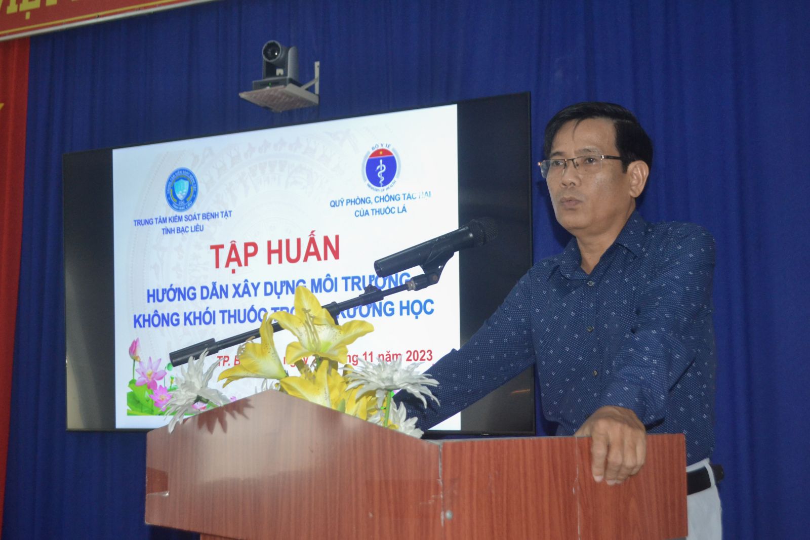 Ngày 24/11/2023, Trung tâm Kiểm soát bệnh tật tỉnh Bạc Liêu tổ chức lớp tập huấn hướng dẫn xây dựng môi trường không khói thuốc trong trường học, tại hội trường Trung tâm. Tham dự lớp tập huấn có ông Tô Minh Cảnh, Phó Giám đốc phụ trách Trung tâm Kiểm soát bệnh tật tỉnh Bạc Liêu, giảng viên; ông Nguyễn Quốc Tế, điều phối viên chương trình Phòng chống tác hại thuốc lá tỉnh Bạc Liêu, giảng viên; cùng hơn 40 đại biểu là cán bộ, lãnh đạo các Trường trực thuộc Sở Giáo dục và Đào tạo tỉnh Bạc Liêu.