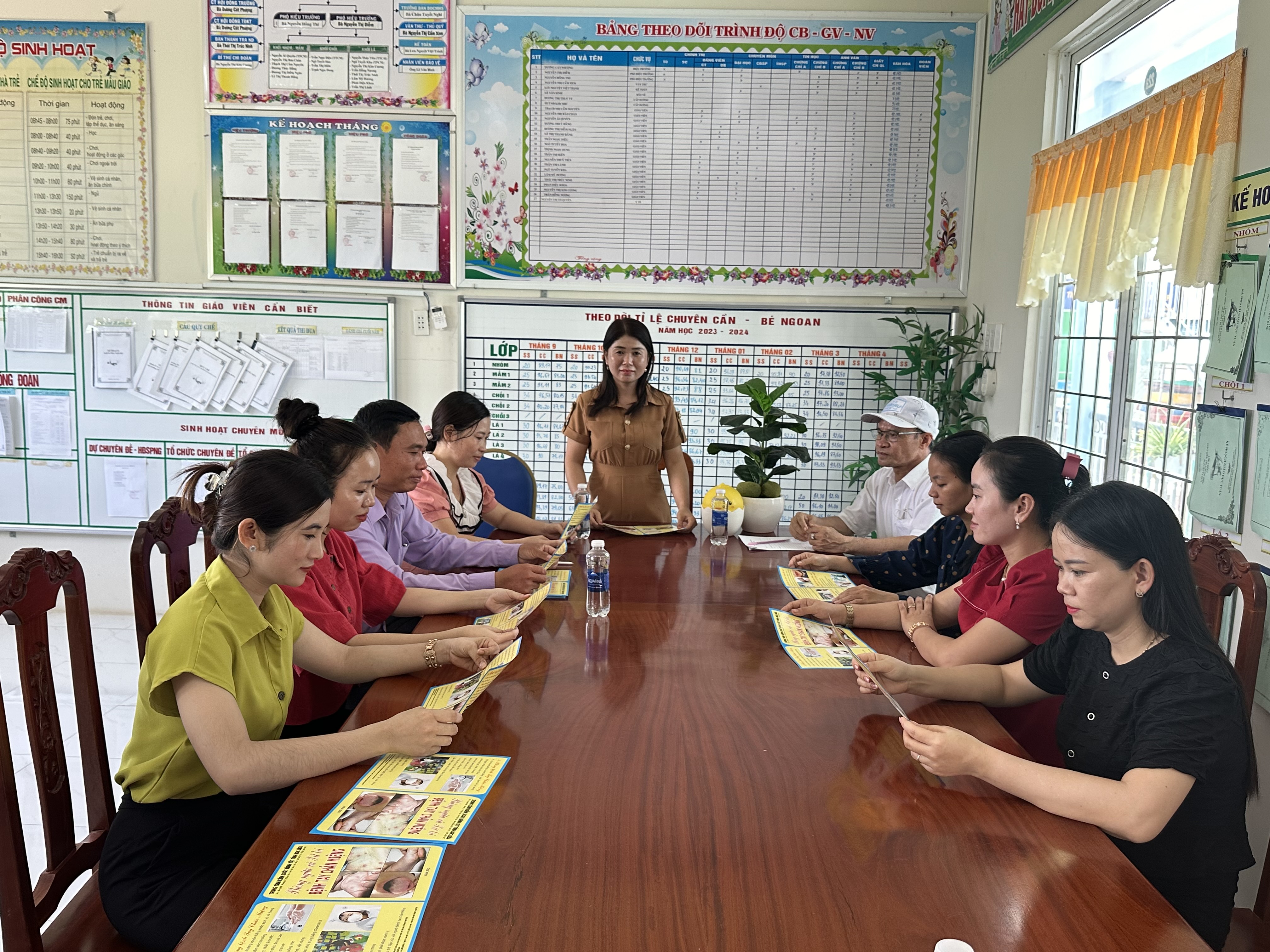 Ngày 23/5/2024, Trạm y tế thị trấn Hòa Bình phối hợp với Trường Mầm non Hoàng Oanh thị trấn Hòa Bình, huyện Hòa Bình, tổ chức buổi truyền thông phòng chống bệnh tay –chân – miệng (TCM) cho giáo viên.