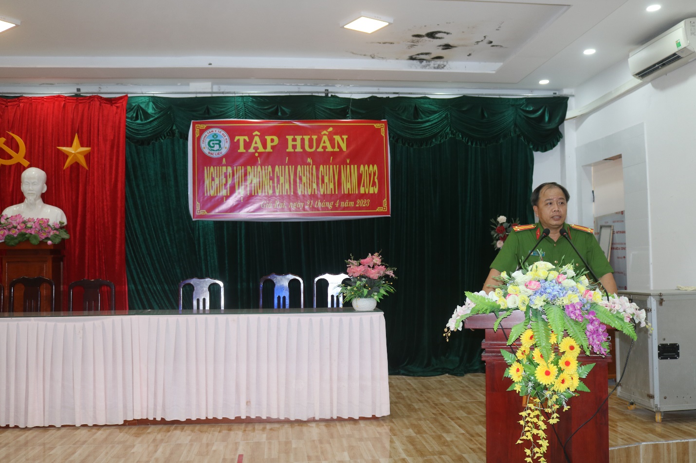 Hôm nay vào lúc 7 giờ 30 phút, ngày 21/4/2023 tại Hội trường Trung tâm y tế thị xã Giá Rai tổ chức lớp tập huấn nghiệp vụ về công tác phòng cháy, chữa cháy cho cán bộ, viên chức công tác tại các khoa, phòng và 10 Trạm y tế trực thuộc Trung tâm. Lớp tập huấn nâng cao nghiệp vụ về công tác phòng cháy, chữa cháy do phòng Tổ chức – Hành chính tham mưu cho Ban Giám đốc, xây dựng kế hoạch và mời cán bộ công an phòng cháy chữa cháy tỉnh Bạc Liêu tham gia hướng dẫn về nghiệp vụ công tác phòng cháy chữa cháy.